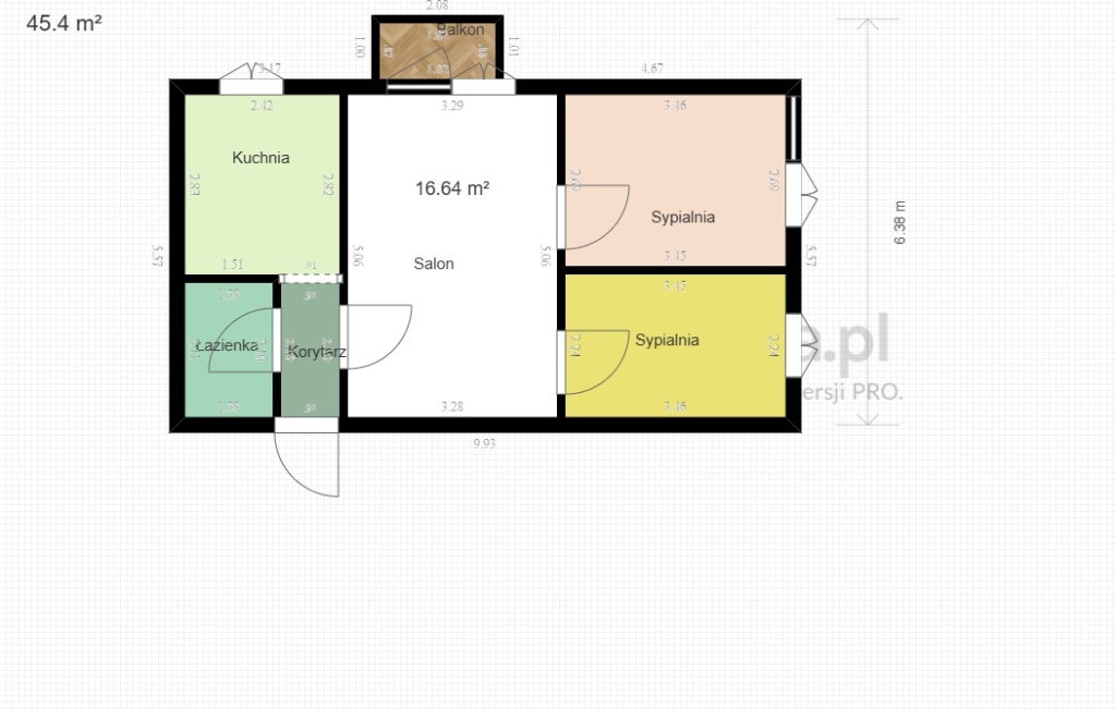 - dwie przytulne sypialnie (9,30 m2 i 7,70 m2)