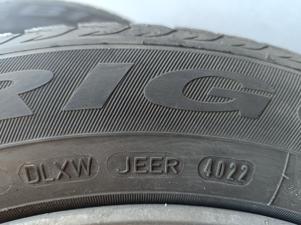 Opony zimowe zakupione w 2023r. (wyprodukowane w X. 2022r.) przejechałem na nich tylko dwa sezony zimowe z bardzo małym przebiegiem, bieżnik głęboki praktycznie jak nowy. Opony nie mają żadnych uszkodzeń w pełni sprawne.