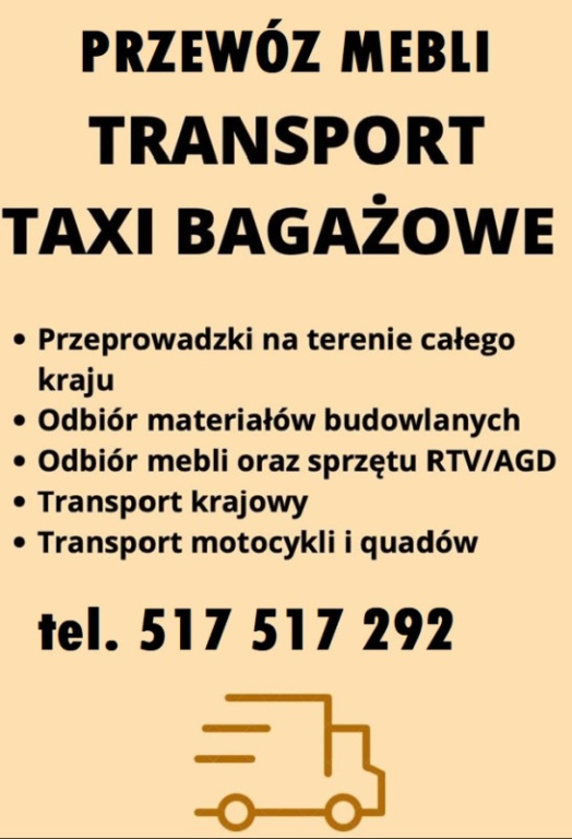 Transport zostanie wykonany szybko, sprawnie, fachowo w przyjemnej atmosferze a więc dzwoń!