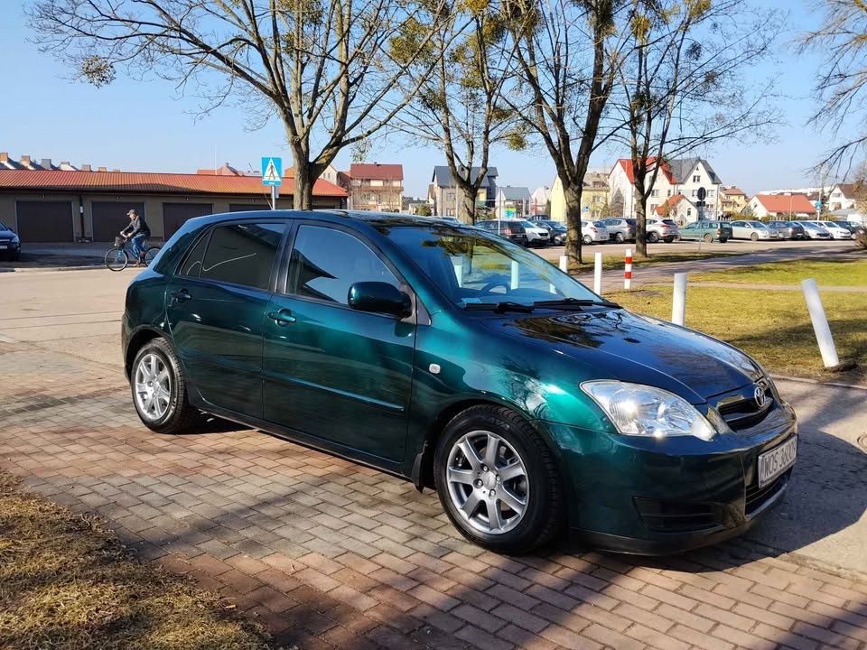 Toyota Corolla 2005r 1.4 D4d Diesel 90 KM Bardzo ładnie utrzymane auto. Garażowane. Nowe opony. Dwa kluczyki. Wymieniony olej luty 2026. Ważne OC i Badanie Techniczne Nowe hamulce tył i przód. Wymieniony akumulator. Zabezpieczona podłoga. Wspomaganie, Alarm, immobiliser, klimatyzacja, radio, elektryczne szyby, komputer pokładowy. Pełne koło zapasowe. Auto bardzo ładnie wygląda i świetnie jeździ. Spalanie 4 litry ropy.