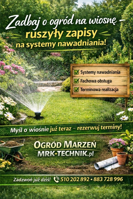 Firma MRK-TECHNIK.pl Marek Koterwas, Renata Koterwas-Żebrowska Spółka Cywilna zaprasza do zapisów na kompleksowe realizacje ogrodowe oraz systemy nawadniania.