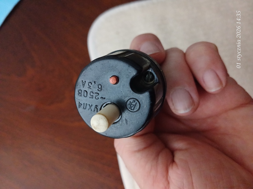 Automatyczny bezpiecznik produkcji b. ZSRR. Używany, ale w dobrym stanie. Może być przydatny do naprawy lub wymiany starszych urządzeń elektrycznych lub jako rekwizyt, 250V/6,3A.