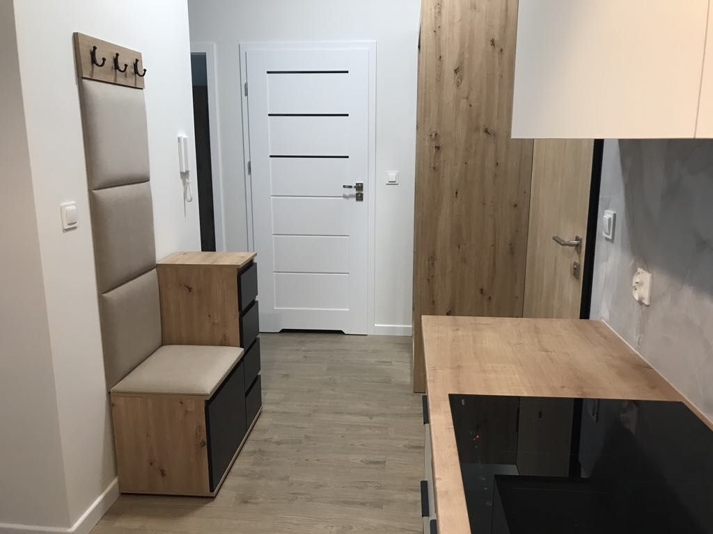 Mieszkanie zostało nowocześnie wykończone z dbałością o detale, spójna kolorystyka oraz przemyślany układ pomieszczeń, który zapewnia komfort i funkcjonalność.