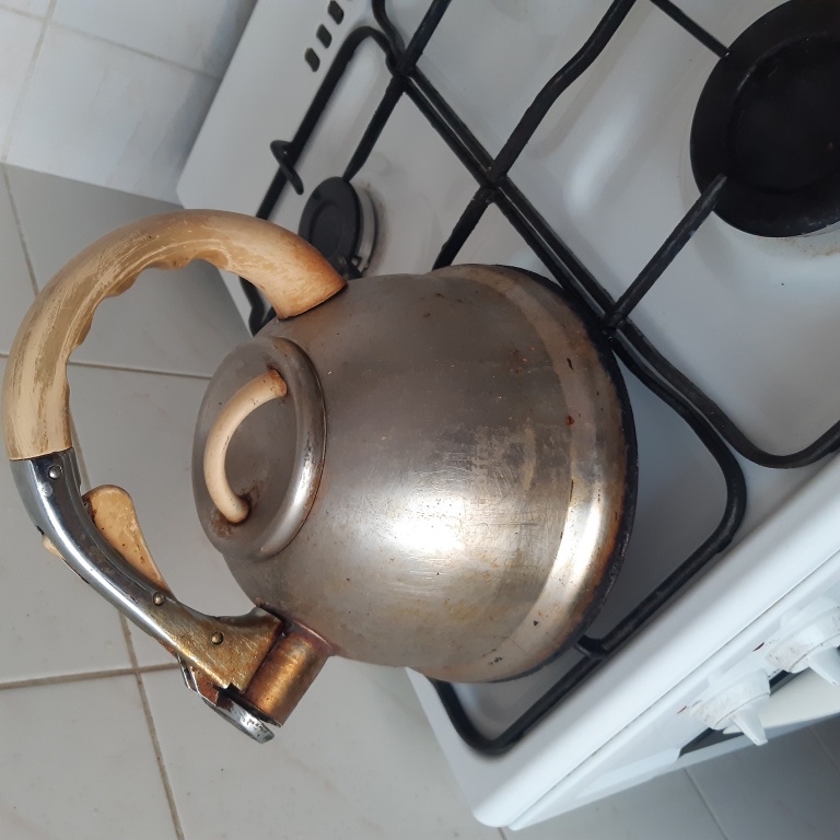 Używany czajnik do gotowania wody z gwizdkiem, wystarczy wyczyścić i odkamienić. Pojemność 3 l. nadaje się do wszystkich rodzajów kuchni wykonany z chińskiej stali nierdzewnej.