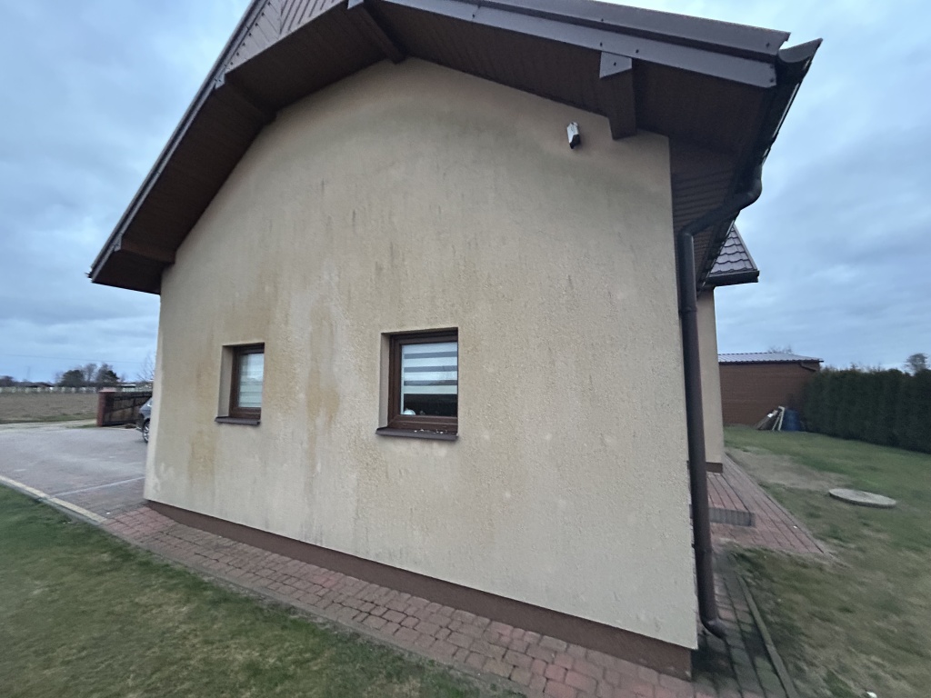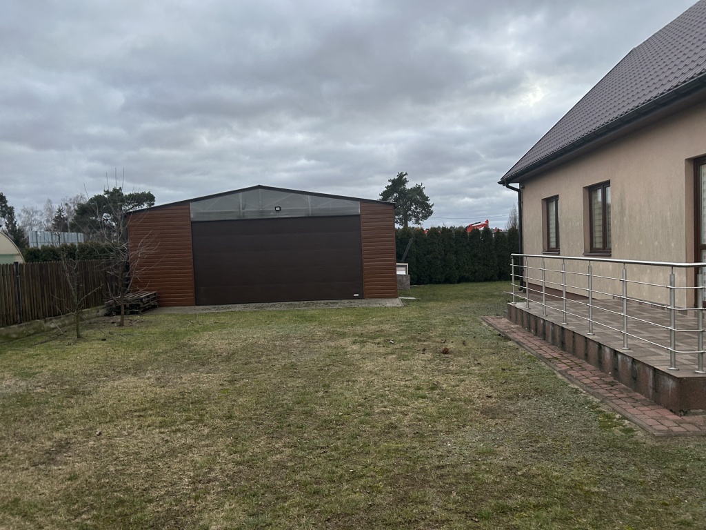Dom posadowiony jest na działce o powierzchni 8,2 ara. Posesja jest w pełni ogrodzona  –  wjazdy z dwiema bramami, do bramy pod dom jest poprowadzony kabel aby tam zamontować napęd. Front domu zdobi elegancka kostka brukowa, a  garaż blaszany otwierany pilotem.