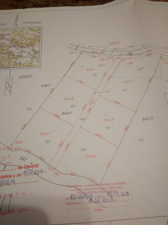 - działka nr 1540/4 - pow. 0,2345 ha; cena - 6800pln za 1 ar.