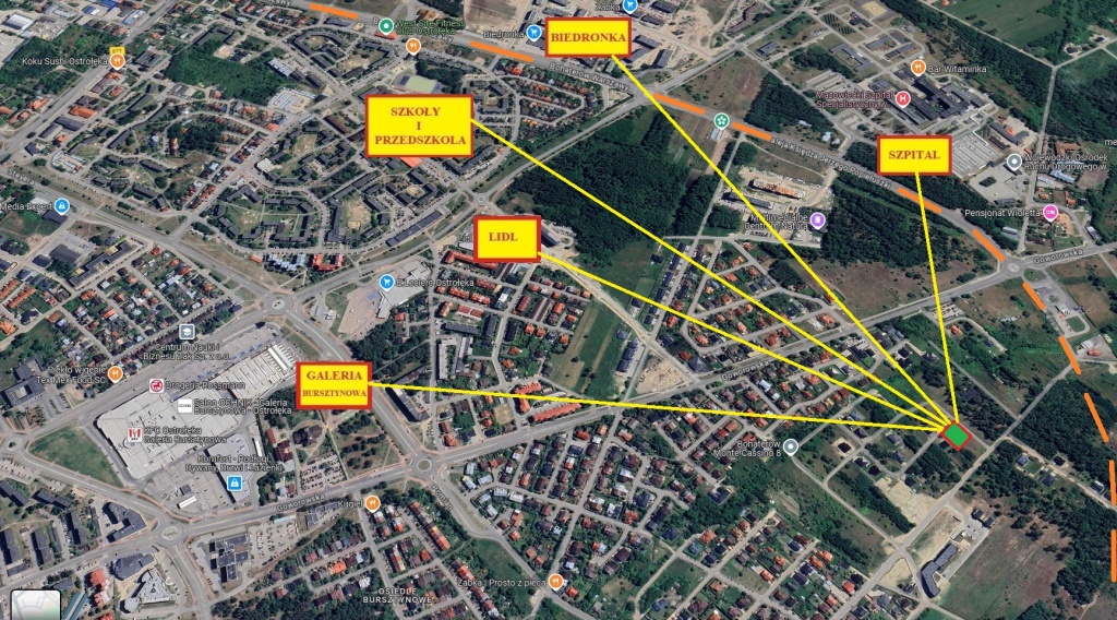 W promieniu 800m: Galeria Bursztynowa, Kościół , Szpital, Szkoły, Przedszkola, sklepy, wiele ścieżek dla pieszych i rowerzystów do aktywnego wypoczynku.