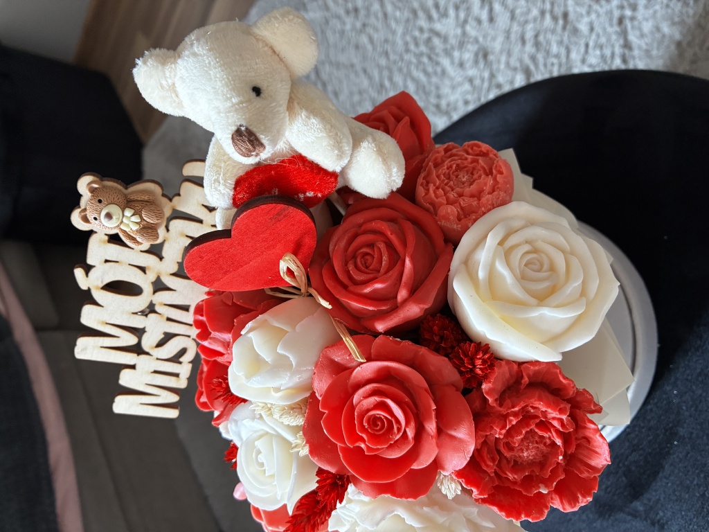 - ręcznie wykonane kwiaty z naturalnego wosku sojowego