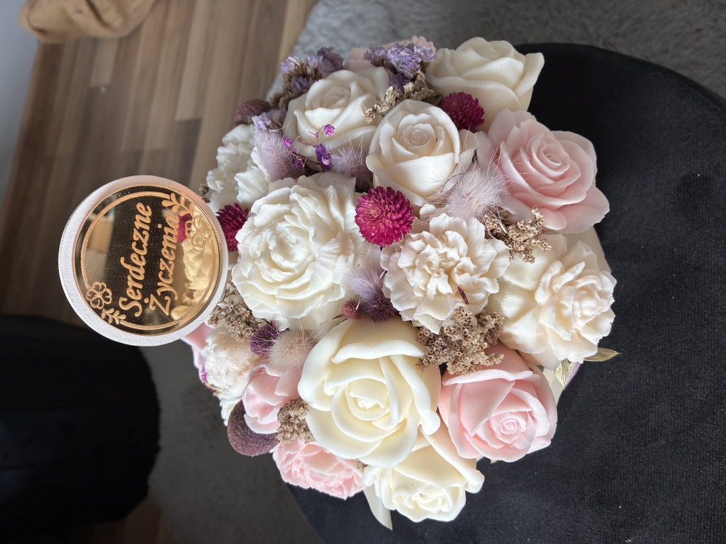 Tworzę unikalne flower boxy z kwiatami wykonanymi z wosku sojowego