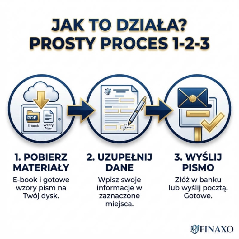 Otrzymujesz praktyczną instrukcję działania oraz pisma, które wystarczy uzupełnić swoimi danymi i wysłać — bez zgadywania, od czego zacząć.
