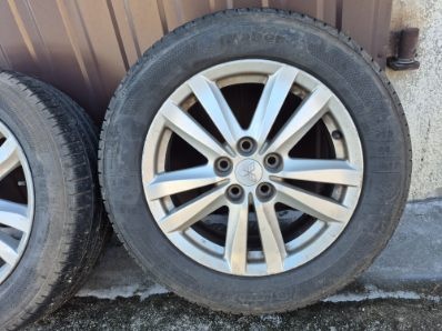 Sprzedam komplet: opony i felgi letnie z zestawem nakrętek z 2003 roku do auta Mitsubishi ASX  silnik 1.8 AWD.. Stan używany oryginalny  nienaprawiany. Opony Kleber Dynaxer SUV 215 60 r 17. Głębokość bieżnika 5,5 -6 mm.  Używany 2 sezony.