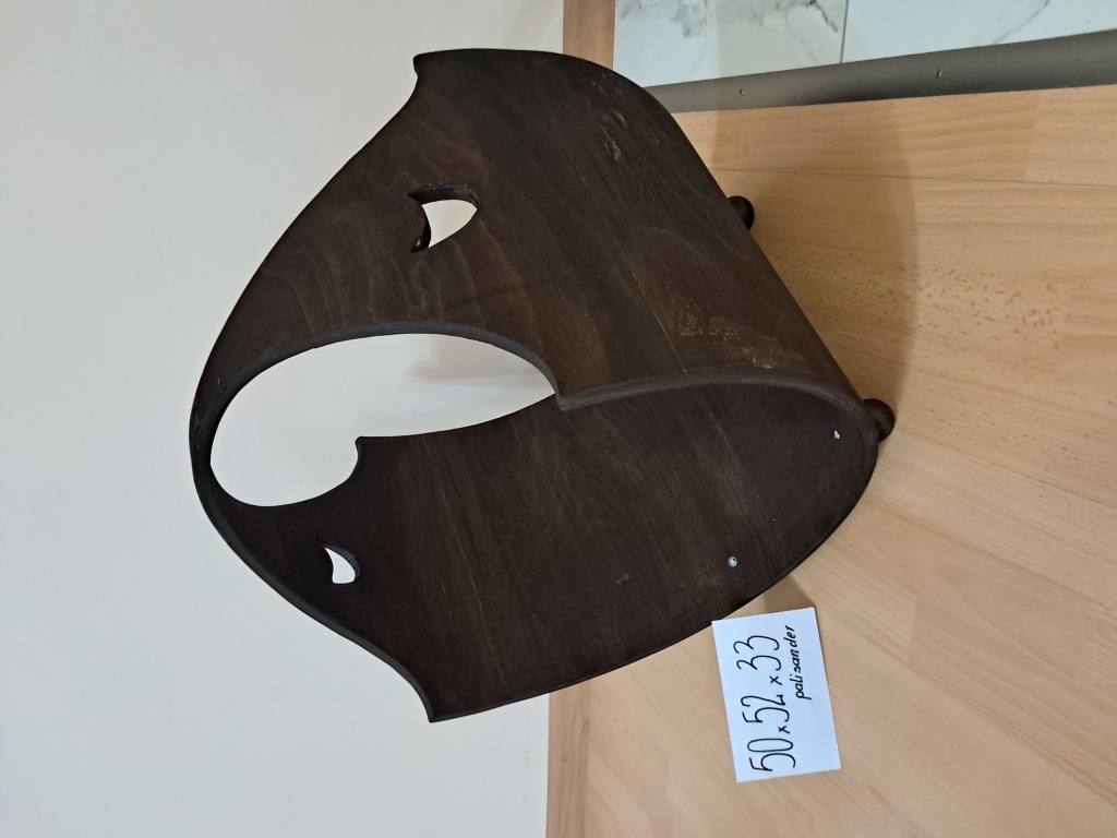 Kosz ten jest idealnym pojemnikiem do transportu i składowania drewna kominkowego. Stanowi funkcyjną ozdobę salonu i nadaję pomieszczeniu niepowtarzalny charakter. Kosz w całości jest wykonany ze sklejki drewnianej o grubości 14mm i zaimpregnowany w kolorze palisander/brąz. Jego zdobienia sprawdzą się zarówno w nowoczesnych jak i klasycznych wnętrzach. Pojemnik posiada jednolite dno, a cztery nóżki-kule z drewna bukowego zapewniają stabilność i nie poniszczą podłogi.