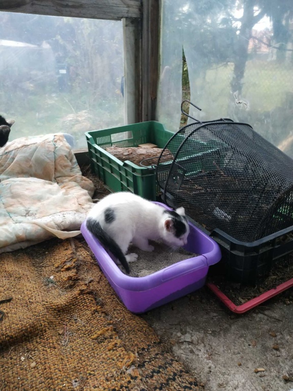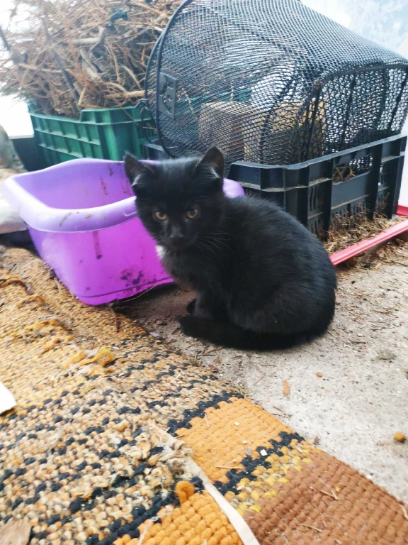 Ktoś po prostu wyrzucił kotkę z kociętami, która desperacko przybłąkała się do mnie, żebrząc o jedzenie. Kociaki to czarny- kotka, a trzy pozostałe to kocury. Nie mogę przyjąć ich do siebie, bo lokum mam małe i swoje dwa dorosłe koty, które agresywnie reagują na obce koty. Prawdopodobnie kotka była wychowywana w domu, przez ludzi, bo jest bardzo ufna, potrzebuje kontaktu z człwiekiem. Małe są płochliwe ale powoli się oswajają, są przesympatyczne, nauczyłam je korzystać z kuwety.