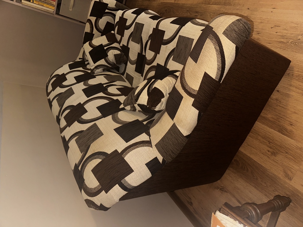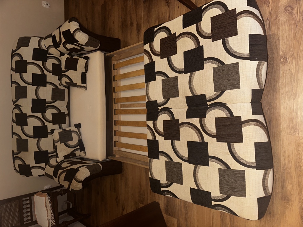 Witam, sprzedamy Naszą „krówkę” kanapę, która służyła nam kilka dobrych lat, ale niestety nie pasuje nam już do wystroju. Kanapa jest świetna, wygodna, dobrze się na niej śpi - po rozłożeniu ma 192cmx112cm, czyściutka, widać na niej drobne ślady użytkowania. Należy raczej do tych twardych legowisk. Do kompletu są dwie małe poduszki. Jej wymiary gdy jest złożona to 85cm wysokości x 155cm szerokości x 85cm głębokości (od ściany).