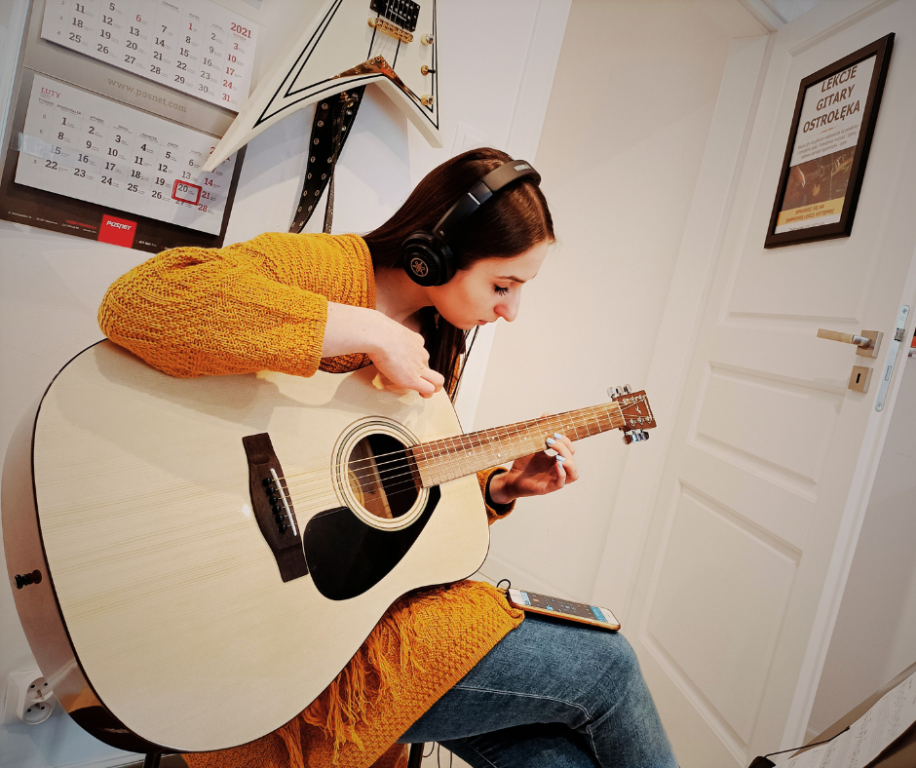 ♫ „Polecam Lekcje Gitary Ostrołęka - atmosfera jest fajna i luźna. Na innych lekcjach gra się to, co nauczyciel uważa za tzw. podstawy i trzeba to grać, nawet jak to jest nudne. Tutaj ćwiczenia są dobierane do moich celów i zawsze dobrze się bawię jak je gram.” ~ Olek, licealista