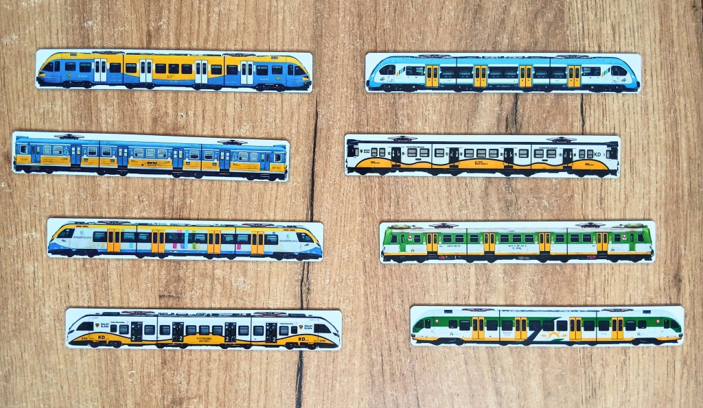 Magnesy zestaw IX “EZT Regionalne” na lodówkę 8 szt. - Magnesiki-Kolejowe.pl