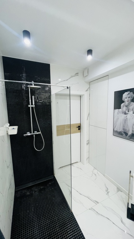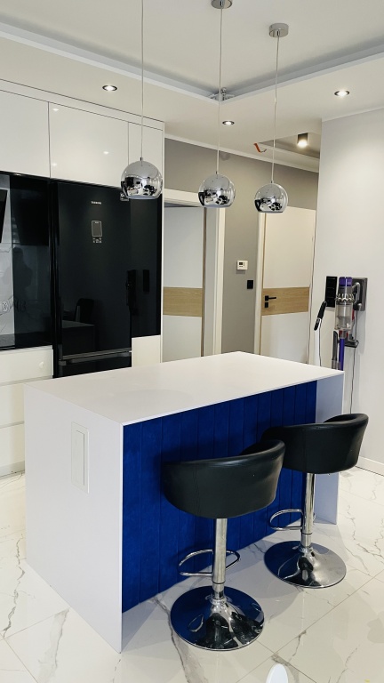 Wysoki standard wykończenia, salon z kuchnią, łazienka oraz korytarz zaprojektowane przez projektantkę. Użyte materiały wykończeniowe w mieszkaniu są wysokiej jakości.