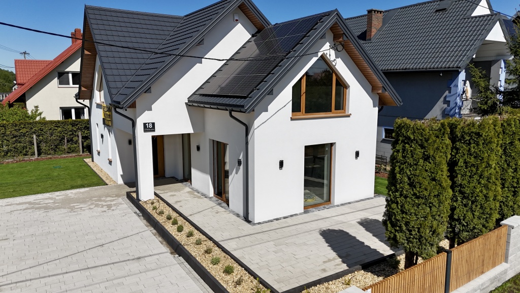 Dom, który zarabia na siebie: Instalacja fotowoltaiczna 5,5 kW oraz pompa ciepła drastycznie obniżają koszty utrzymania.