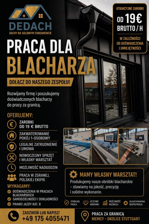 PRACA DLA BLACHARZA - NIEMCY (okolice Stuttgart) Dołącz do naszego zespołu!