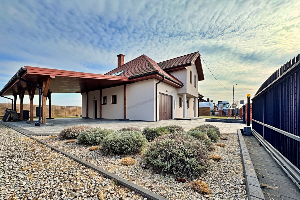 Dom z 2008 roku usytuowany jest na pięknie zagospodarowanej i ogrodzonej działce o powierzchni 681 m².