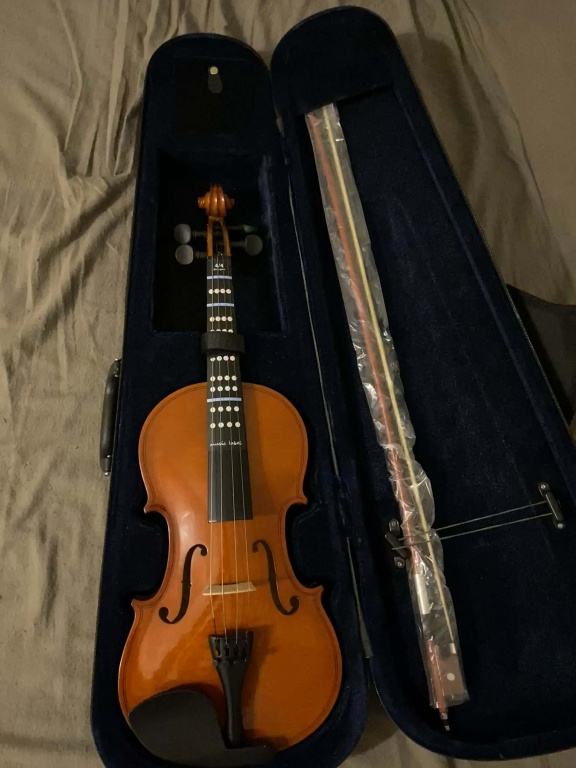 Oferuję skrzypce z kalafonią, smyczkiem, futerałem, naklejką z dźwiękami oraz dwiema zapasowymi strunami dobrej jakości, skrzypce sprzedaję ze względu na brak czasu w realizowaniu się muzycznie i mam nadzieję że dobrze posłużą komuś innemu, jest to model Vienna V100 4/4 pełen rozmiar, struny które dodaję do zestawu to struna A i D, skrzypce były przeze mnie używane około 2-3 razy. Tylko odbiór osobisty
