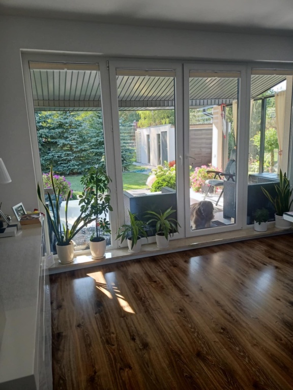 Pomieszczenia klimatyzowane. W oknach moskitiery, rolety. Bardzo duży taras zadaszony, przeszklony z widokiem na ogród i las.
