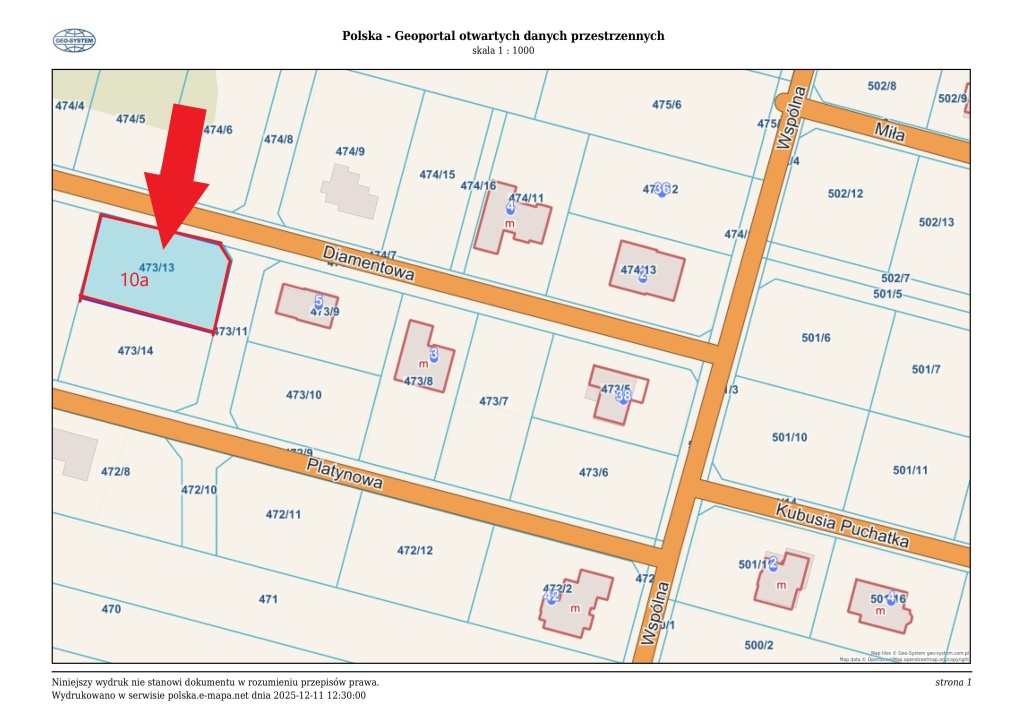 Sprzedam działkę budowlaną 10a, Dzbenin ul.Diamentowa.