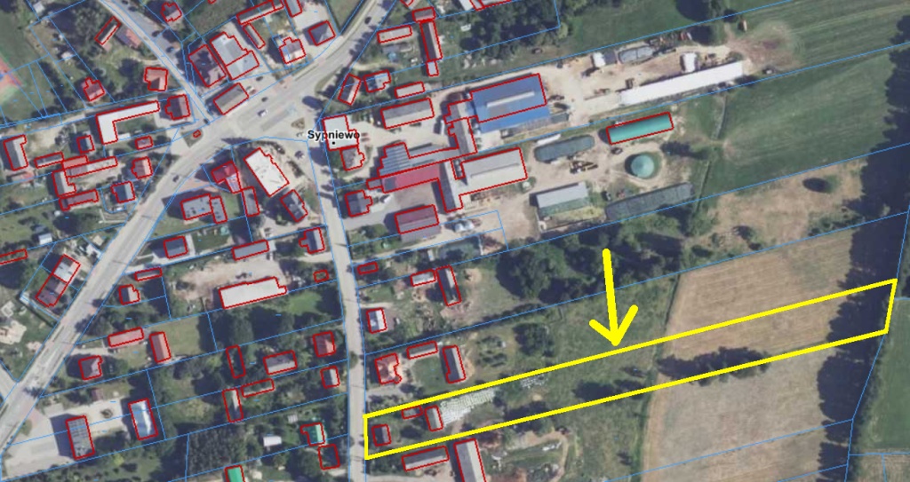 zabudowa na działce: dom drewniany, obory i stodoła drewniana – do rozbiórki.