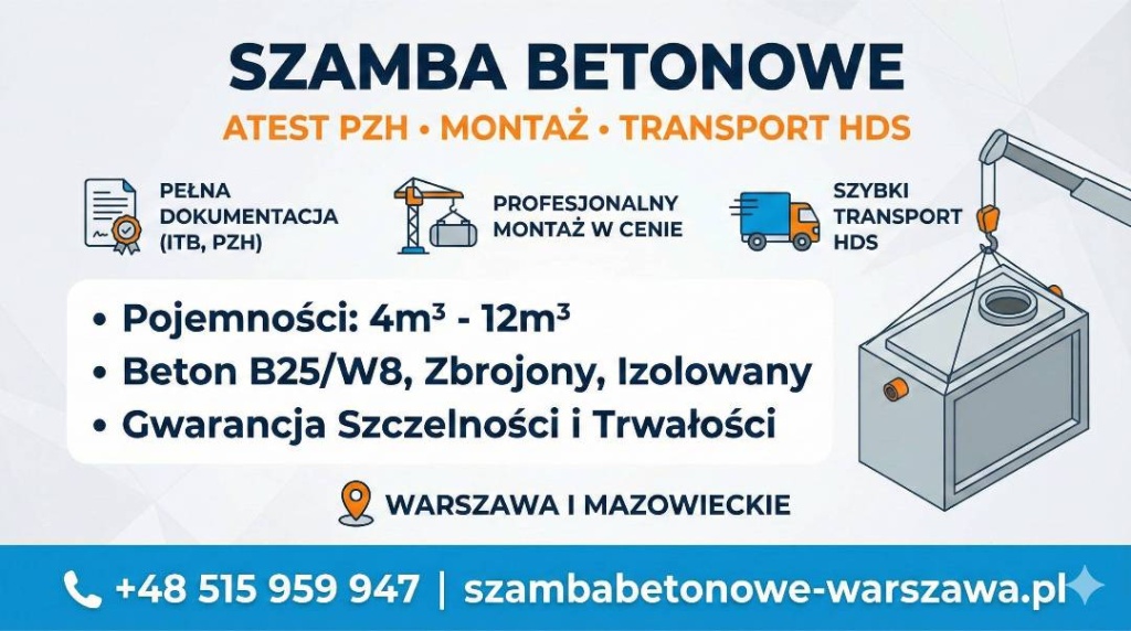 Szamba Betonowe Ostrołęka Atest PZH, Montaż, Transport HDS