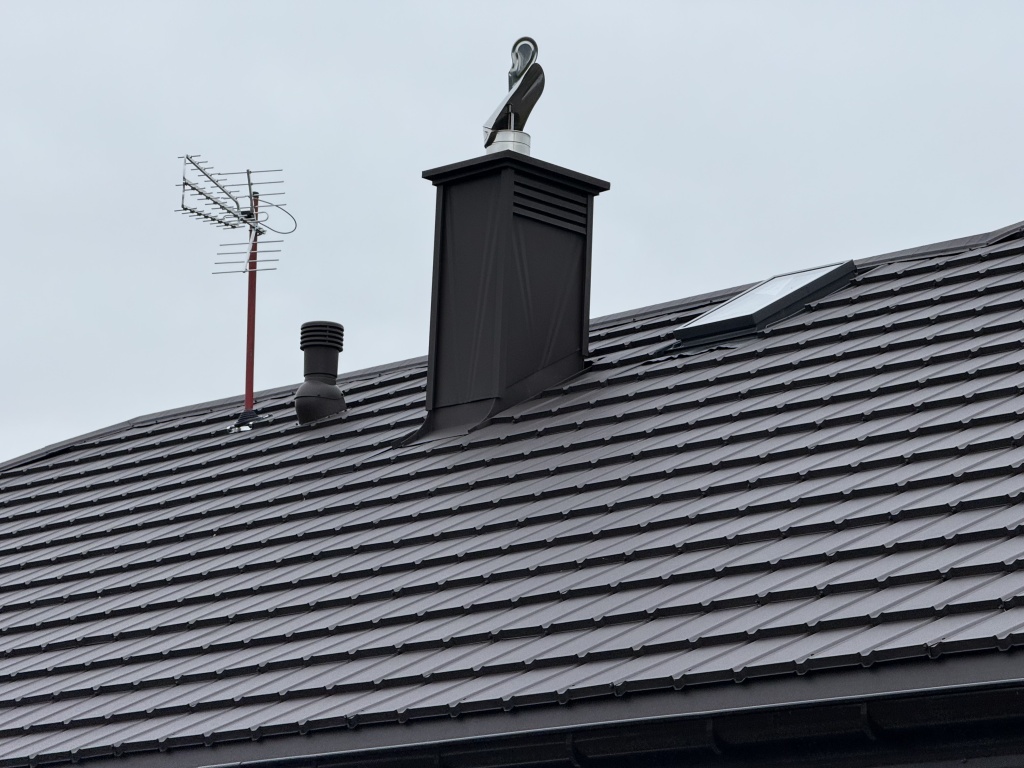 * montaż rynien oraz kompletna obróbka dachu wraz z kominem