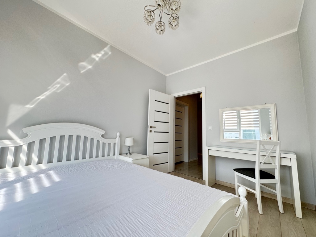 Mieszkanie składa się z salonu z kuchnią, łazienki, garderoby oraz 2 sypialni. Mieszkanie jest umeblowane i dostępne do zamieszkania od 15 GRUDNIA 2025!