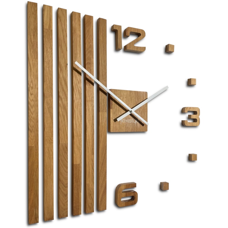 Nowy zegar ścienny z lamelami z prawdziwego dębowego drewna firmy FLEXISTYLE. Szerokość: 60 cm