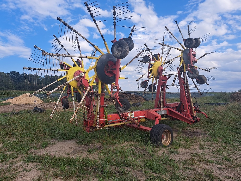 zgrabiarka 4 karuzelowa Pottinger grabi do środka od 8m do 12,5m do złożenia częsciowo już zlożona jak widać na pierwszym zdjenciu niska cena