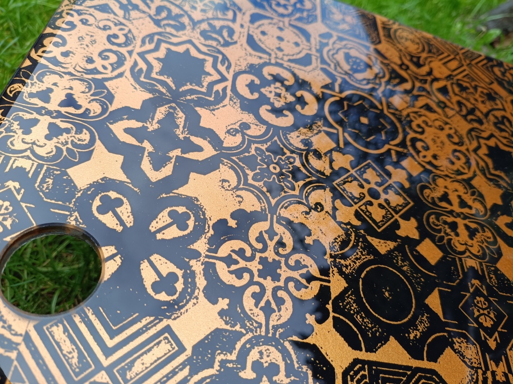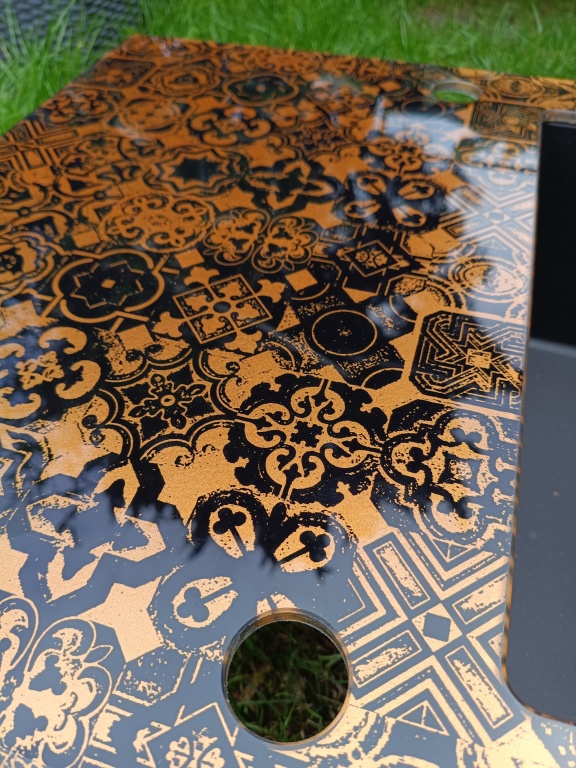 Wyjątkowy złoty ociekacz ozdobiony czarnym wzorem