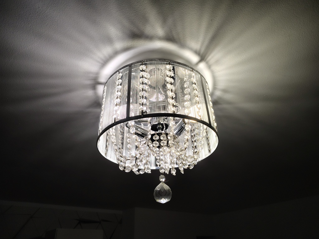 Sprzedam lampę sufitową z kryształkami o średnicy 30cm. Cena 230zł. 3 żarówki gratis.